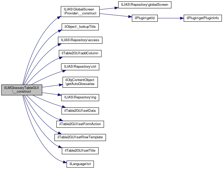 References ilTableGUI\$data, $DIC, ilTableGUI\$lng, ILIAS\GlobalScreen\Provider\__construct(), ilObject\_lookupTitle(), ILIAS\Repository\access(), ilTable2GUI\addColumn(), ILIAS\Repository\ctrl(), ilObjContentObject\getAutoGlossaries(), ILIAS\Repository\lng(), ilTable2GUI\setData(), ilTable2GUI\setFormAction(), ilTable2GUI\setRowTemplate(), ilTable2GUI\setTitle(), and ilLanguage\txt().
