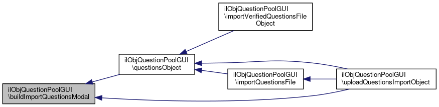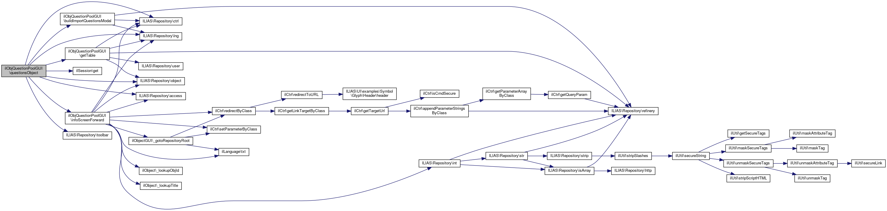 Here is the call graph for this function:| ilObjQuestionPoolGUI::questionsObject | ( | RoundTripModal | $import_questions_modal = null | ) |