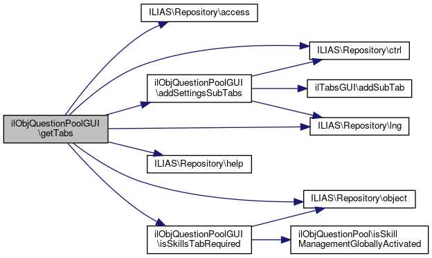References ILIAS\Repository\access(), addSettingsSubTabs(), ilAssQuestionSkillAssignmentsGUI\CMD_SHOW_SKILL_QUEST_ASSIGNS, ILIAS\Repository\ctrl(), ILIAS\Repository\help(), isSkillsTabRequired(), ILIAS\Repository\lng(), and ILIAS\Repository\object().