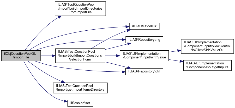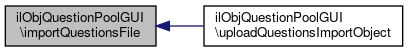 Here is the call graph for this function:| ilObjQuestionPoolGUI::uploadQuestionsImportObject | ( | ) |