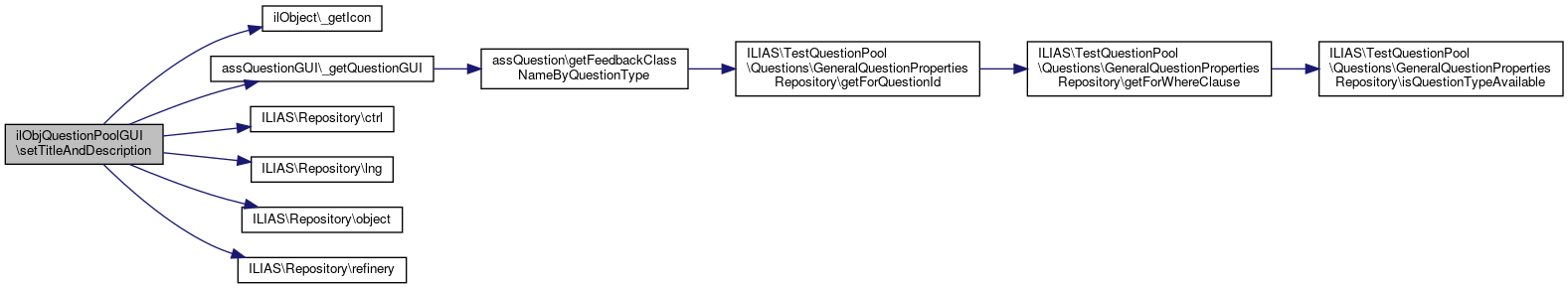 Here is the call graph for this function:| ilObjQuestionPoolGUI::setTitleAndDescription | ( | ) |