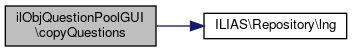 Here is the call graph for this function:| ilObjQuestionPoolGUI::pasteObject | ( | ) |