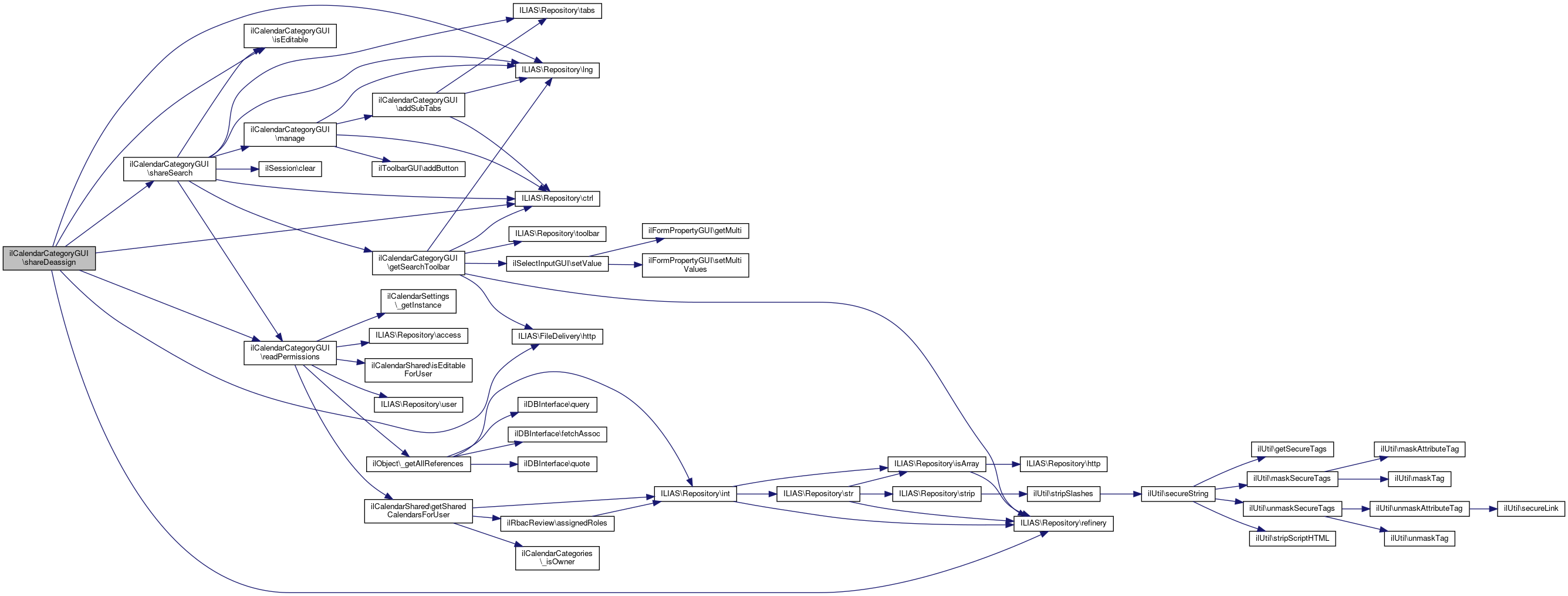 Here is the call graph for this function:| ilCalendarCategoryGUI::shareDeassign | ( | ) |