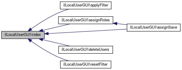 Here is the caller graph for this function:| ilLocalUserGUI::index | ( | bool | $show_delete = false | ) |
