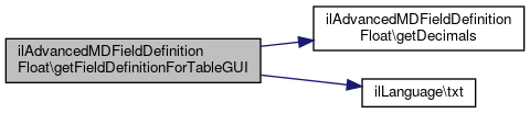 Here is the call graph for this function:| ilAdvancedMDFieldDefinitionFloat::getFieldDefinitionForTableGUI | ( | string | $content_language | ) |