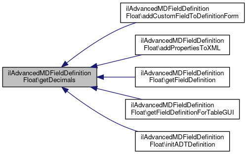 Here is the call graph for this function:| ilAdvancedMDFieldDefinitionFloat::getDecimals | ( | ) |