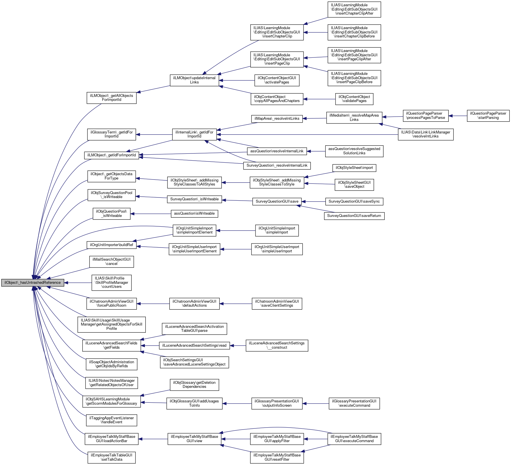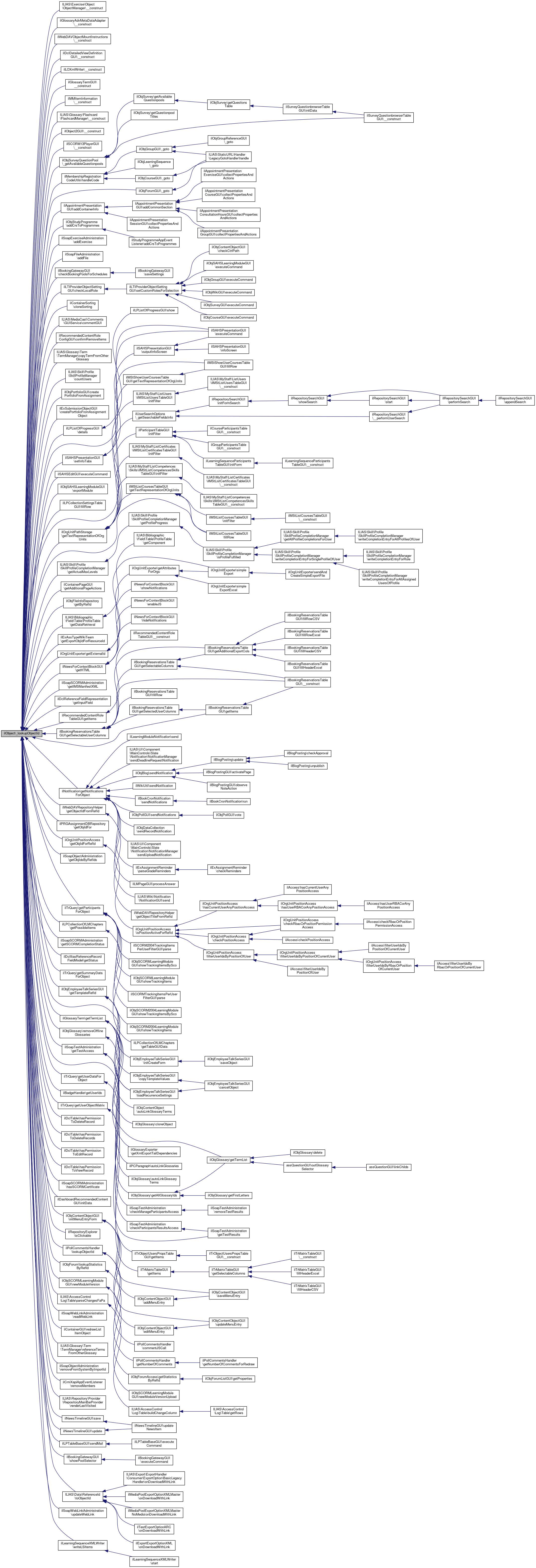 Referenced by ilOrgUnitExtension\__construct(), ilObjUser\_getAllUserData(), ilObjSurveyQuestionPool\_getAvailableQuestionpools(), ilObjQuestionPool\_getAvailableQuestionpools(), ilObjTest\_getAvailableTests(), ilObjStyleSheet\_getClonableContentStyles(), ilObjGroup\_getMembers(), ilObjUser\_getUsersForFolder(), ilObjUserTracking\_hasLearningProgressOtherUsers(), ilObjQuestionPool\_isWriteable(), _resetDeletedDate(), _setDeletedDate(), createReference(), ilObjForum\createSettings(), ilObjPortfolioTemplate\getAvailablePortfolioTemplates(), ilObjStudyProgramme\getCreatableSubObjects(), ilObjTest\getGroupData(), ilObjStudyProgramme\getInstanceByRefId(), ilObjSession\handleAutoFill(), ilRemoteObjectBase\handleDelete(), ilObjForum\lookupForumIdByRefId(), ilObjForum\lookupLastPostByRefId(), ilObjForum\lookupStatisticsByRefId(), ilObjForum\preloadForumIdsByRefIds(), ilContainerReference\read(), ilObjGlossary\removeOfflineGlossaries(), ilObjStudyProgramme\setProgressesCompletedFor(), and setRefId().