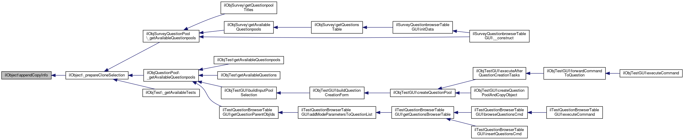 Referenced by ilObjUser\_checkExternalAuthAccount(), ilObjSystemFolder\_getHeaderTitleDescription(), ilObjGlossary\_lookupOnline(), ilObjStyleSheet\addCharacteristic(), ilObjSurvey\addConstraint(), ilObjSurvey\addConstraintToQuestion(), ilObjSystemFolder\addHeaderTitleTranslation(), ilObjStyleSheet\addMediaQuery(), ilObjStyleSheet\addParameter(), ilObjSurvey\addQuestionToBlock(), ilObjStyleSheet\addTemplate(), ilObjStyleSheet\addTemplateClass(), ilObjUser\addToPCClipboard(), ilObjWorkspaceRootFolder\addTranslation(), ilObjStyleSheet\characteristicExists(), ilObjSurvey\checkReminder(), ilObjContentObject\checkStructure(), ilObjSurvey\checkTutorNotification(), ilObjUser\clipboardDeleteObjectsOfType(), ilObjSCORM2004LearningModule\convert_1_2_to_2004(), ilObjBookingPool\create(), ilObjMediaPool\create(), ilObjWiki\create(), ilObjMediaCast\create(), ilObjSession\create(), ilObjStyleSheet\create(), ilObjStyleSheet\createFromXMLFile(), ilObjContentObject\createProperties(), ilObjSurvey\createQuestionblock(), ilObjCategory\delete(), ilObjSystemFolder\delete(), ilObjBookingPool\delete(), ilContainerReference\delete(), ilObjWiki\delete(), ilObjExercise\delete(), ilObjMediaCast\delete(), ilObjSession\delete(), ilObjUser\delete(), ilObjStyleSheet\delete(), ilObjPoll\deleteAllAnswers(), ilObjSurveyQuestionPool\deleteAllData(), ilObjSurvey\deleteAllUserData(), ilObjPoll\deleteAllVotes(), ilObjPoll\deleteAnswer(), ilObjSurvey\deleteAppraisee(), ilObjSurvey\deleteConstraint(), ilObjSurvey\deleteConstraints(), ilObjStyleSheet\deleteCustomStylePars(), ilObjStyleSheet\deleteMediaQuery(), ilObjMediaCast\deleteOrder(), ilObjStyleSheet\deleteParameter(), ilObjLearningSequence\deletePostConditionsForSubObjects(), ilObjSurvey\deleteRater(), ilObjStyleSheet\deleteStyleParOfChar(), ilObjSurvey\deleteSurveyCode(), ilObjSurvey\deleteSurveyRecord(), ilObjSCORM2004LearningModule\deleteTrackingDataOfUsers(), ilObjSurvey\deleteUserSettings(), ilObjSurvey\deleteWorkingData(), ilObjWiki\deliverUserHTMLExport(), ilObjStyleSheet\do_3_10_CharMigration(), ilObjStyleSheet\do_3_10_Migration(), ilObjStyleSheet\do_3_9_Migration(), ilObjBlog\doCreate(), ilObjTaxonomy\doCreate(), ilObjPortfolioBase\doCreate(), ilObjPoll\doCreate(), ilObjBlog\doDelete(), ilObjTaxonomy\doDelete(), ilObjPortfolioBase\doDelete(), ilVerificationObject\doDelete(), ilObjPoll\doDelete(), ilObjPortfolioBase\doRead(), ilObjTaxonomy\doRead(), ilVerificationObject\doRead(), ilObjPoll\doRead(), ilObjPortfolioBase\doUpdate(), ilObjTaxonomy\doUpdate(), ilObjPoll\doUpdate(), ilObjSurvey\findCodeForUser(), ilObjSurvey\finishSurvey(), ilObjContentObject\fixTree(), ilObjSurvey\getActiveID(), ilObjLTIAdministration\getActiveObjectTypes(), ilObjSurvey\getAllRelations(), ilObjSurvey\getAnonymousIdByCode(), ilObjPoll\getAnswer(), ilObjPoll\getAnswers(), ilObjSurvey\getAppraiseesData(), ilObjSurvey\getAppraiseesToRate(), ilObjSCORM2004LearningModule\getAttemptsForUser(), ilObjStyleSheet\getColorCodeForName(), ilObjStyleSheet\getColors(), ilObjSurvey\getConstraints(), ilObjSurvey\getEvaluationByUser(), ilObjSurvey\getExistingQuestions(), ilObjContentObject\getExportDirectory(), ilObjSurvey\getExternalCodeRecipients(), ilObjSurvey\getFinishedIdForAppraiseeIdAndRaterId(), ilObjSurvey\getFinishedIdsForAppraiseeId(), ilObjStyleSheet\getHideStatus(), ilObjSurvey\getLastAccess(), ilObjSurvey\getLastActivePage(), ilObjLearningSequence\getLSItems(), ilObjLearningSequence\getLSLearnerItems(), ilObjStyleSheet\getMaxMQueryOrderNr(), ilObjStyleSheet\getMediaQueries(), ilObjStyleSheet\getMediaQueryForId(), ilObjSCORM2004LearningModule\getModuleVersionForUser(), ilObjUser\getPCClipboardContent(), ilObjBookingPool\getPoolsWithReminders(), ilObjSurvey\getPrecondition(), ilObjStudyProgramme\getProgrammesMonitoringCategory(), ilObjStudyProgramme\getProgrammesMonitoringMemberSource(), ilObjSurvey\getQuestionblockQuestionIds(), ilObjSurvey\getQuestionblockQuestions(), ilObjSurvey\getQuestionblocksTable(), ilObjSurveyQuestionPool\getQuestionInfos(), ilObjSurveyQuestionPool\getQuestions(), ilObjSurveyQuestionPool\getQuestionsData(), ilObjSurveyQuestionPool\getQuestionsInfo(), ilObjSurvey\getQuestionsTable(), ilObjSurveyQuestionPool\getQuestiontype(), ilObjSurvey\getQuestionType(), ilObjSurvey\getRatersData(), ilObjTaxonomyAdministration\getRepositoryTaxonomies(), ilObjSurvey\getSurveyCodesForExport(), ilObjSurvey\getSurveyCodesTableData(), ilObjSurvey\getSurveyFinishedIds(), ilObjSurvey\getSurveyPages(), ilObjSurvey\getSurveyParticipants(), ilObjSurvey\getSurveyQuestions(), ilObjStyleSheet\getTemplate(), ilObjStyleSheet\getTemplateClasses(), ilObjStyleSheet\getTemplates(), ilObjStyleSheet\getTemplateXML(), ilObjSurvey\getTextblock(), ilObjSCORM2004LearningModule\getTrackedItems(), ilObjSCORM2004LearningModule\getTrackingDataAgg(), ilObjWorkspaceRootFolder\getTranslations(), ilObjMediaPool\getUsedFormats(), ilObjSurvey\getUserAccessCode(), ilObjSurvey\getUserData(), ilObjSurvey\getUserDataFromActiveId(), ilObjWiki\getUserHTMLExportProgress(), ilObjSurvey\getUserSettings(), ilObjSurvey\getUserSurveyExecutionStatus(), shibUser\getUsrIdByExtId(), ilObjSurvey\getVariables(), ilObjPoll\getVotesByUsers(), ilObjSurvey\getWorkingtimeForParticipant(), ilObjSurvey\importObject(), ilObjSCORM2004LearningModule\importSuccess(), ilObjSurvey\importSurveyCode(), ilObjWiki\initUserHTMLExport(), ilObjSurvey\insertQuestion(), ilObjSurvey\insertQuestionblock(), ilObjSurvey\is360SurveyStarted(), ilObjSurvey\isAnonymizedParticipant(), ilObjSurvey\isAppraisee(), ilObjSurvey\isAppraiseeClosed(), ilObjUser\isCurrentUserActive(), ilObjWiki\isImportantPage(), ilObjSurveyQuestionPool\isInUse(), ilObjSurvey\isRater(), ilObjSurvey\isSurveyCodeUnique(), ilObjSurvey\isSurveyCodeUsed(), ilObjSurvey\isUnusedCode(), ilObjSurvey\loadFromDb(), ilObjSurvey\loadQuestionsFromDb(), ilObjSurvey\loadWorkingData(), shibUser\loginExists(), ilObjGlossary\lookup(), ilObjGlossary\lookupAutoGlossaries(), ilObjCourseReference\lookupMemberUpda