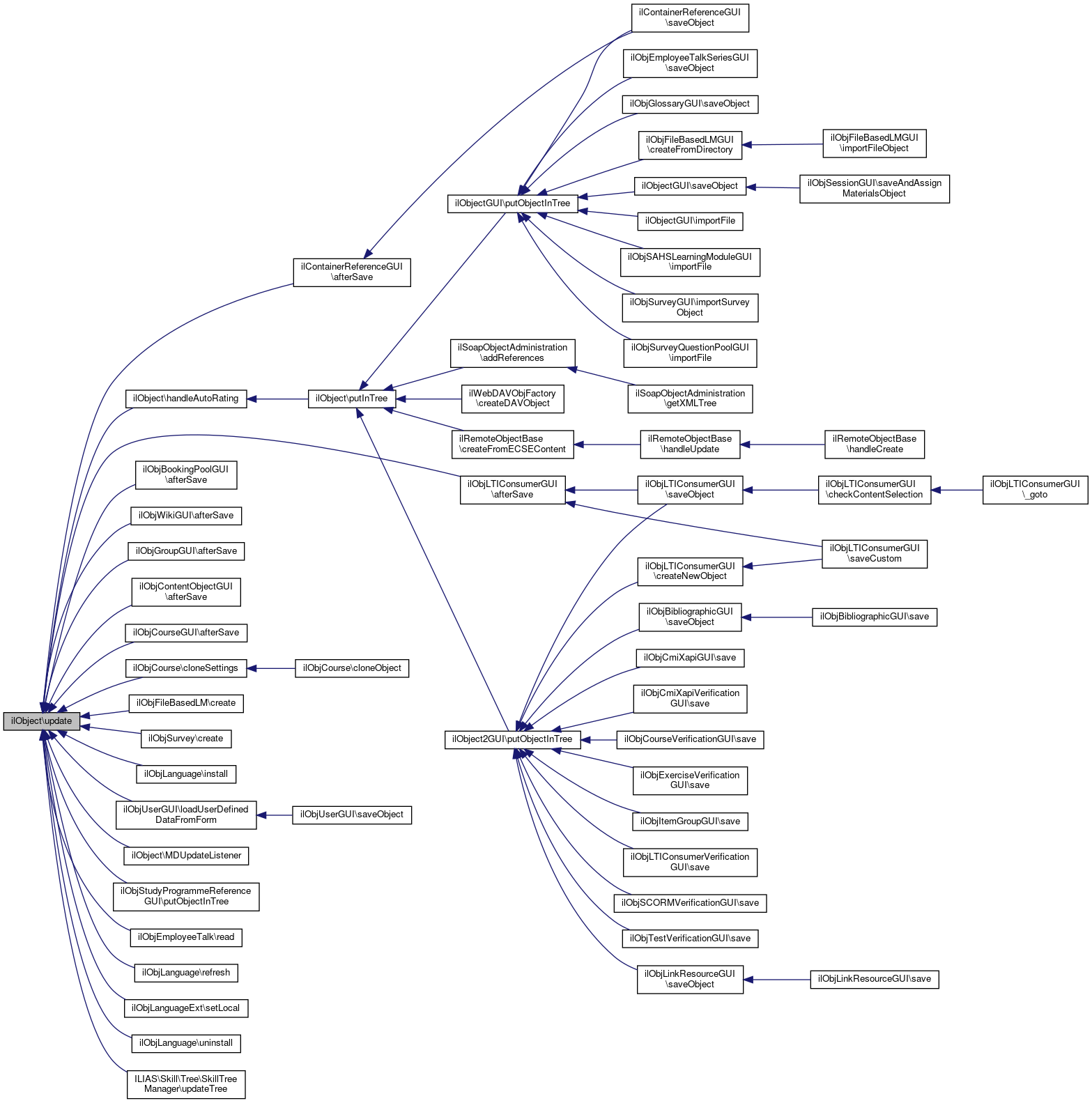 Referenced by ilContainerReferenceGUI\afterSave(), ilObjBookingPoolGUI\afterSave(), ilObjWikiGUI\afterSave(), ilObjGroupGUI\afterSave(), ilObjLTIConsumerGUI\afterSave(), ilObjContentObjectGUI\afterSave(), ilObjCourseGUI\afterSave(), ilObjCourse\cloneSettings(), ilObjFileBasedLM\create(), ilObjSurvey\create(), handleAutoRating(), ilObjLanguage\install(), ilObjUserGUI\loadUserDefinedDataFromForm(), MDUpdateListener(), ilObjStudyProgrammeReferenceGUI\putObjectInTree(), ilObjEmployeeTalk\read(), ilObjLanguage\refresh(), ilObjLanguageExt\setLocal(), ilObjLanguage\uninstall(), and ILIAS\Skill\Tree\SkillTreeManager\updateTree().