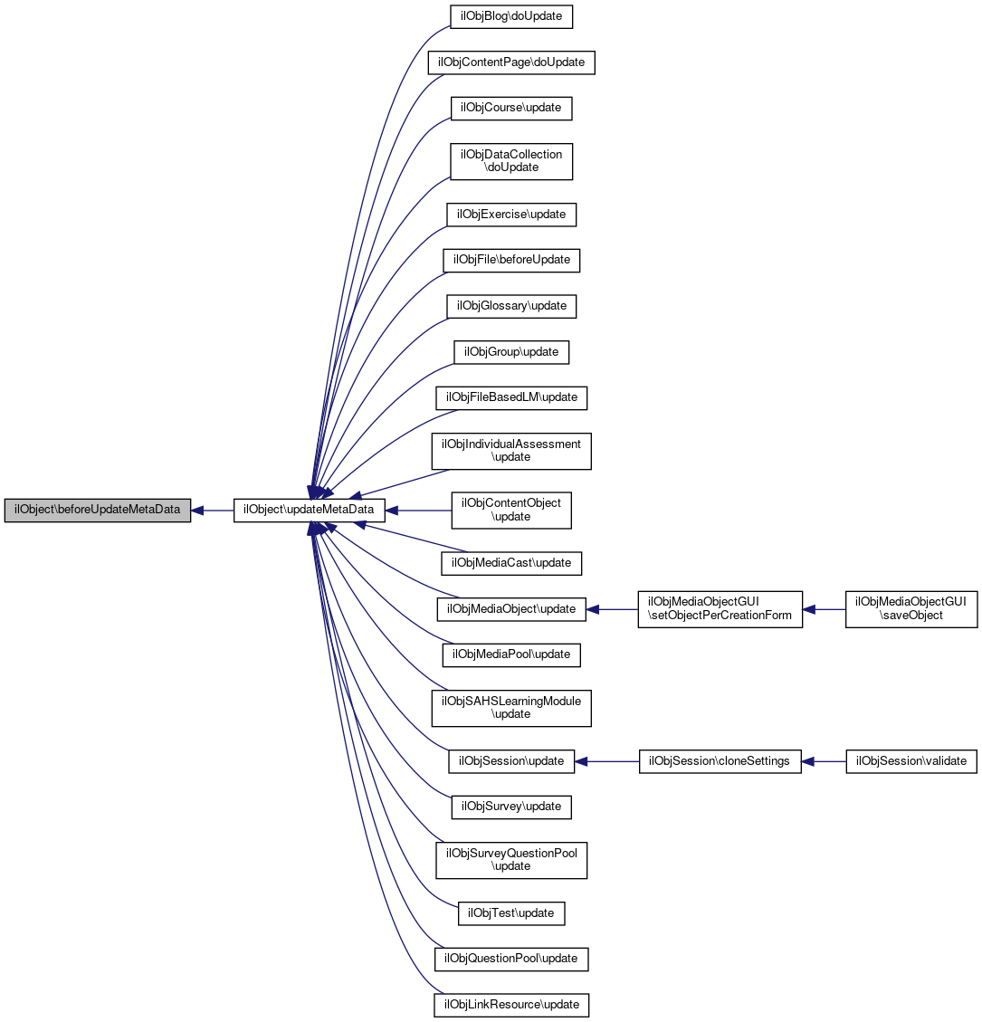 Referenced by ilObjFile\beforeUpdate(), ilObjDataCollection\doUpdate(), ilObjBlog\doUpdate(), ilObjContentPage\doUpdate(), ilObjFileBasedLM\update(), ilObjLinkResource\update(), ilObjSurveyQuestionPool\update(), ilObjQuestionPool\update(), ilObjMediaPool\update(), ilObjIndividualAssessment\update(), ilObjContentObject\update(), ilObjSurvey\update(), ilObjTest\update(), ilObjMediaCast\update(), ilObjGlossary\update(), ilObjMediaObject\update(), ilObjExercise\update(), ilObjSession\update(), ilObjGroup\update(), ilObjSAHSLearningModule\update(), and ilObjCourse\update().