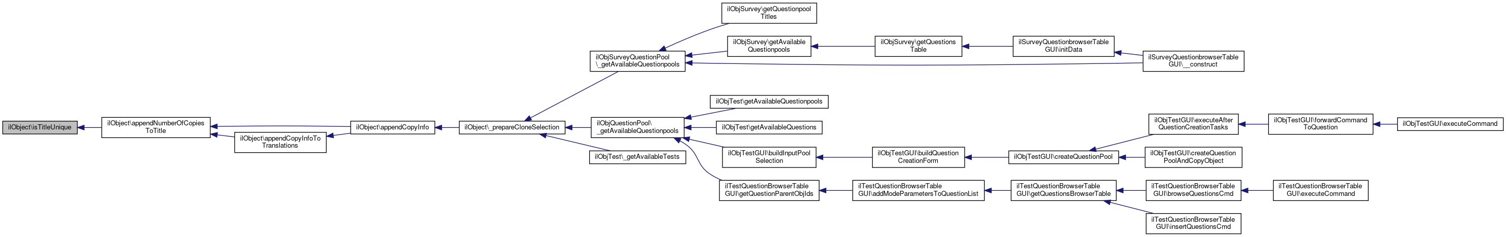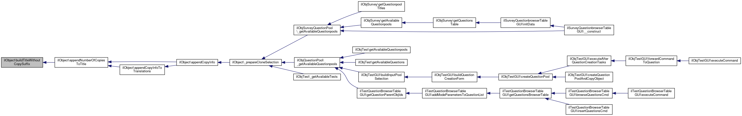 Referenced by ilObjLanguage\__construct(), ilObjSurvey\_addQuestionblock(), ilObjQuestionPool\_getAvailableQuestionpools(), _prepareCloneSelection(), _writeTitle(), ilObjSystemFolder\addHeaderTitleTranslation(), ilObjQuestionPool\appendCounterToQuestionTitleIfNecessary(), buildTitleWithoutCopySuffix(), ilObjBookingPool\cloneObject(), ilObjTest\copyQuestions(), ilObjTest\delete(), ilObjTest\deliverPDFfromFO(), ilObjTest\deliverPDFfromHTML(), ilObjLinkResource\doMDUpdateListener(), ilObjSurveyQuestionPool\duplicateQuestion(), ilObjPortfolio\getAvailablePortfolioLinksForUserIds(), ilObjCourse\getDefaultMemberRole(), ilObjRepositorySettings\getDefaultNewItemGrouping(), ilObjRepositorySettings\getNewItemGroups(), ilObjSession\getPresentationTitleAppointmentPeriod(), ilObjTest\getQuestionTitle(), getTitle(), ilObjSCORM2004LearningModule\getTrackingDataAgg(), ilObjSurvey\insertQuestionblock(), setTitle(), and ilObjContentObject\validatePages().