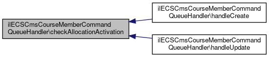 Here is the call graph for this function:| ilECSCmsCourseMemberCommandQueueHandler::checkAllocationActivation | ( | ilECSSetting | $server, |