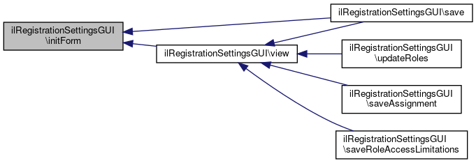 Here is the caller graph for this function:| ilRegistrationSettingsGUI::initRoleAccessForm | ( | ) |