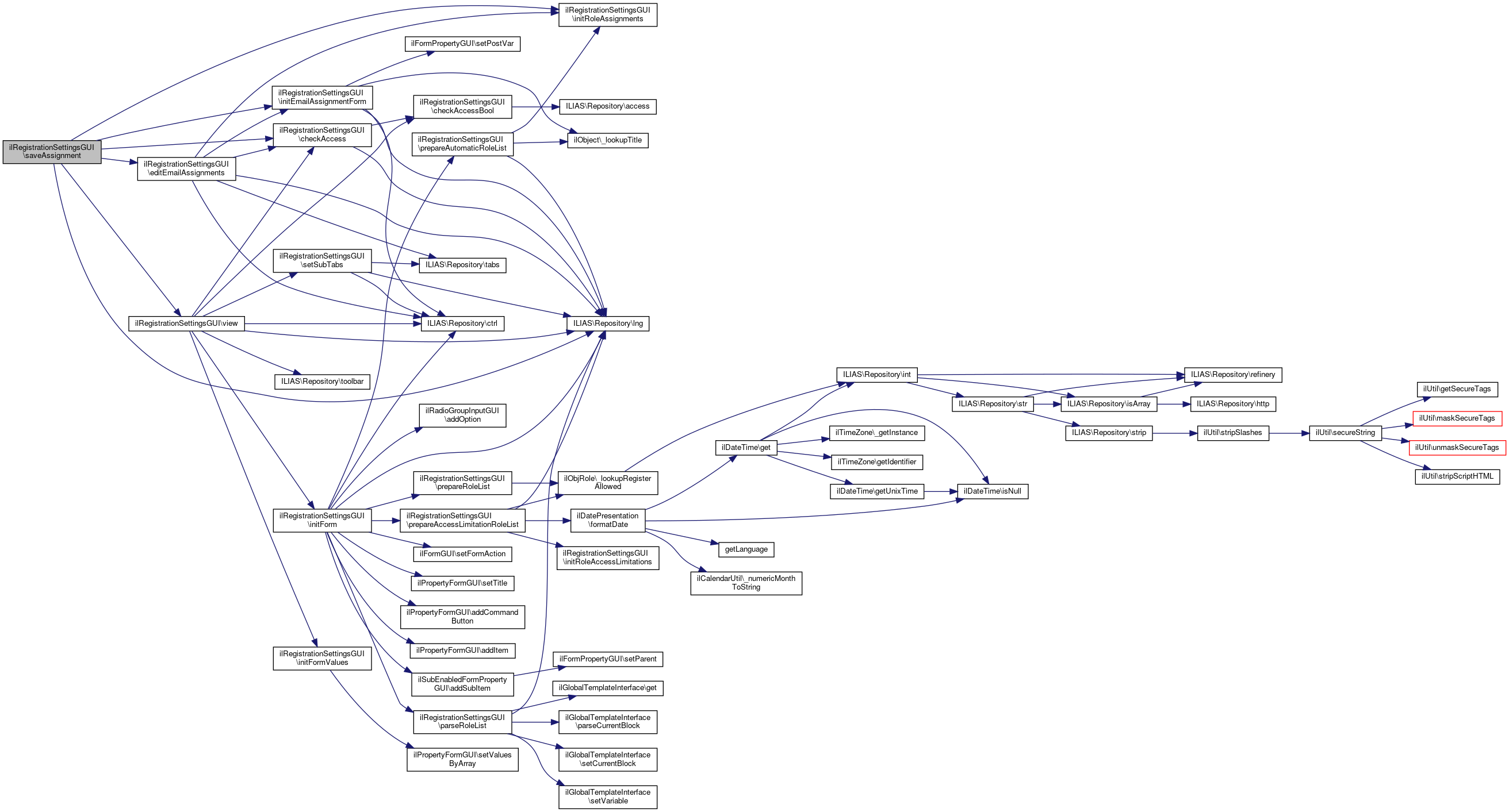 Here is the call graph for this function:| ilRegistrationSettingsGUI::saveAssignment | ( | ) |