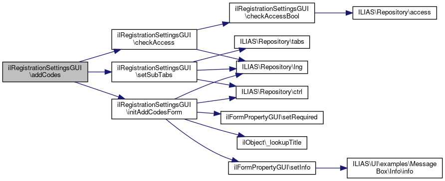 Here is the call graph for this function:| ilRegistrationSettingsGUI::initAddCodesForm | ( | ) |