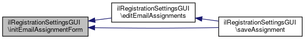 Here is the caller graph for this function:| ilRegistrationSettingsGUI::initEmailAssignmentForm | ( | ) |