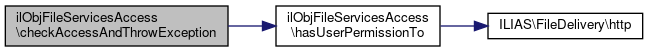 Here is the call graph for this function:| ilObjFileServicesAccess::checkAccessAndThrowException | ( | string | $permission | ) |