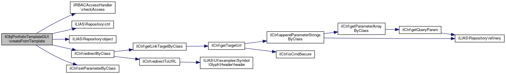 Here is the call graph for this function:| ilObjPortfolioTemplateGUI::createFromTemplate | ( | ) |