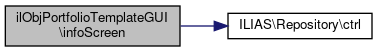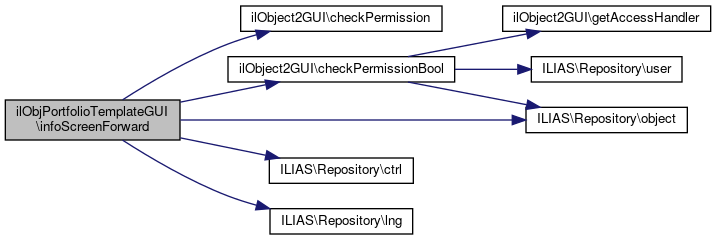 Here is the call graph for this function:| ilObjPortfolioTemplateGUI::infoScreenForward | ( | ) |