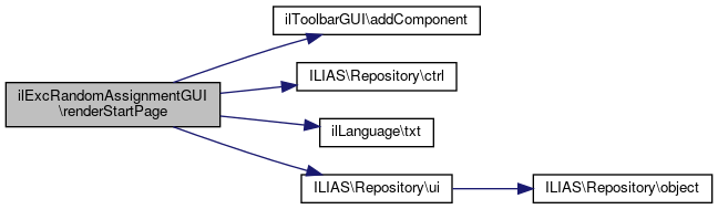 Here is the call graph for this function:| ilExcRandomAssignmentGUI::renderStartPage | ( | ) |