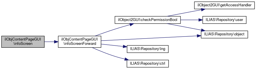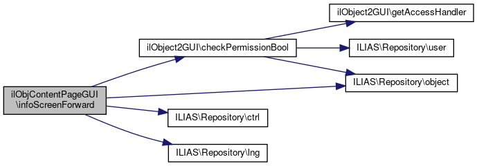 Here is the call graph for this function:| ilObjContentPageGUI::infoScreenForward | ( | ) |