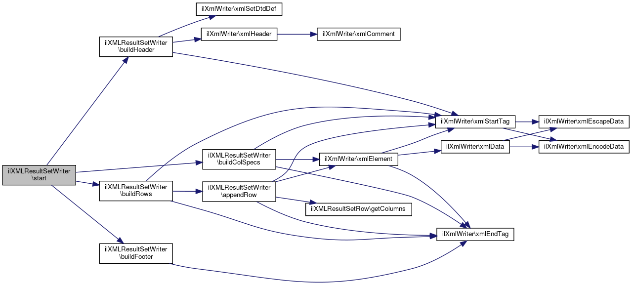 Here is the call graph for this function:| ilXMLResultSetWriter::start | ( | ) |