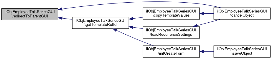 Here is the caller graph for this function:| ilObjEmployeeTalkSeriesGUI::redirectToParentGUI | ( | ) |