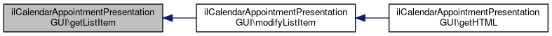Here is the call graph for this function:| ilCalendarAppointmentPresentationGUI::getListItem | ( | ) |