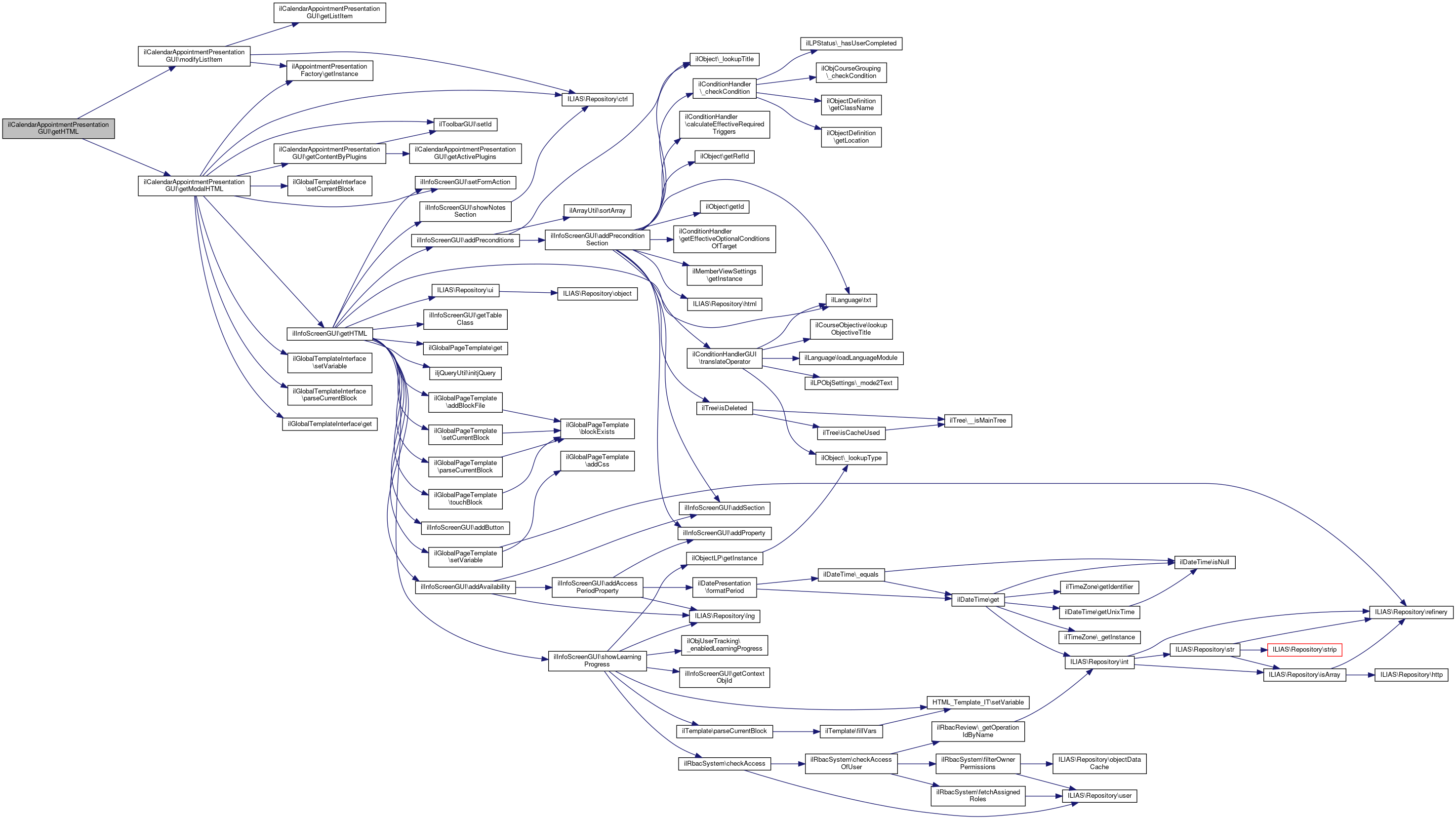Here is the caller graph for this function:| ilCalendarAppointmentPresentationGUI::getHTML | ( | ) |