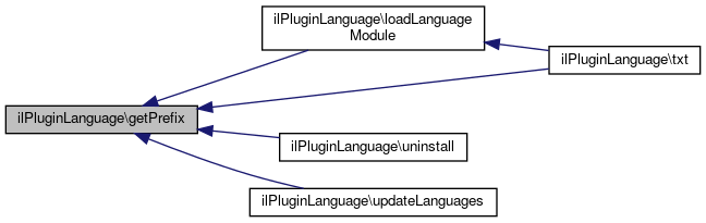 Here is the caller graph for this function:| ilPluginLanguage::getPrefix | ( | ) |