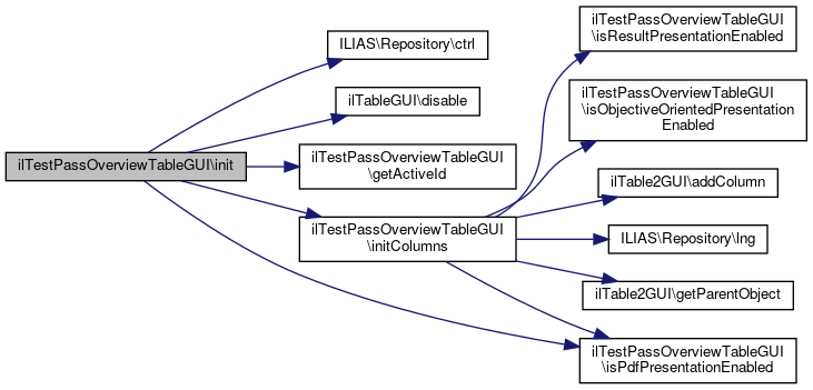 Here is the caller graph for this function:| ilTestPassOverviewTableGUI::init | ( | ) |