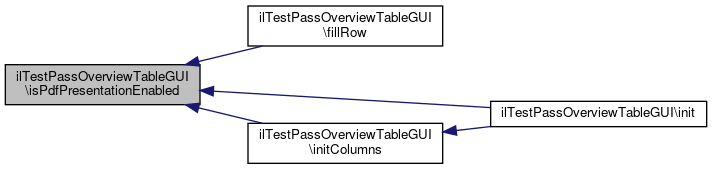 Here is the caller graph for this function:| ilTestPassOverviewTableGUI::isPdfPresentationEnabled | ( | ) |
