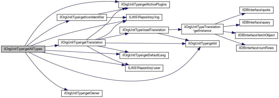 Here is the caller graph for this function:| ilOrgUnitType::getTranslations | ( | ) |