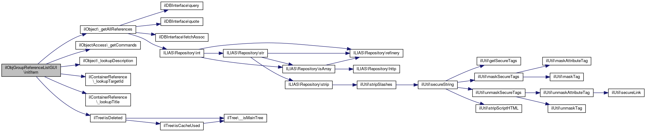 Here is the call graph for this function:| ilObjGroupReferenceListGUI::initItem | ( | int | $ref_id, |