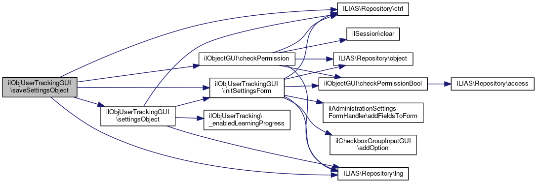 Here is the call graph for this function:| ilObjUserTrackingGUI::saveSettingsObject | ( | ) |