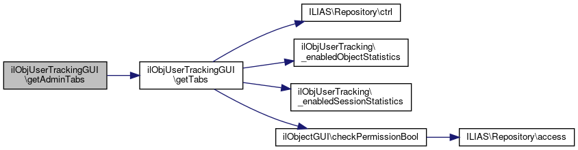 Here is the call graph for this function:| ilObjUserTrackingGUI::getAdminTabs | ( | ) |
