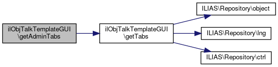 Here is the call graph for this function:| ilObjTalkTemplateGUI::getAdminTabs | ( | ) |