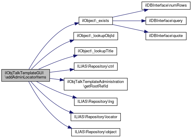 References $container, $GLOBALS, $refId, ilObject\_exists(), ilObject\_lookupObjId(), ilObject\_lookupTitle(), ILIAS\Repository\ctrl(), ilObjTalkTemplateAdministration\getRootRefId(), ILIAS\Repository\lng(), ILIAS\Repository\locator(), and ILIAS\Repository\object().