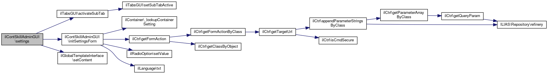 Here is the call graph for this function:| ilContSkillAdminGUI::settings | ( | ) |