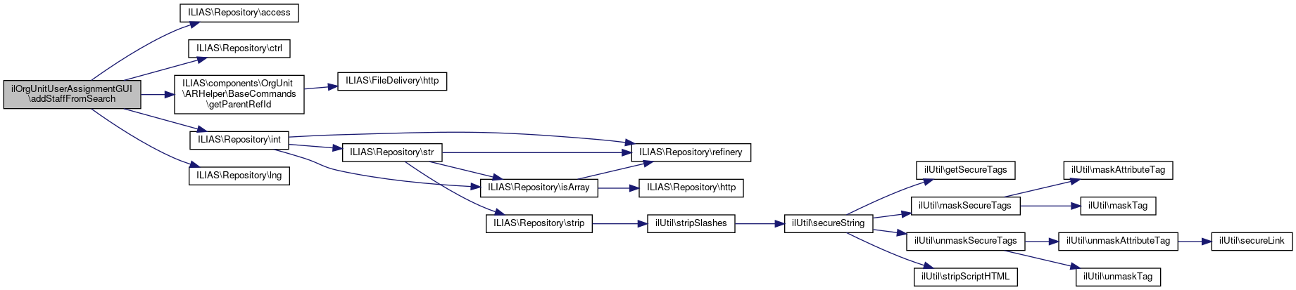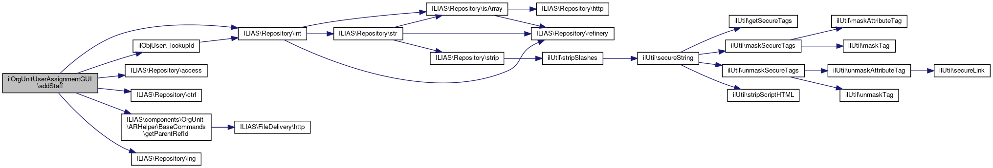 Here is the call graph for this function:| ilOrgUnitUserAssignmentGUI::addStaff | ( | ) |