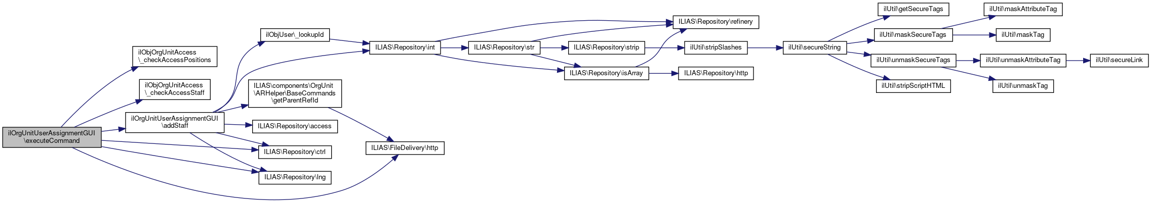 Here is the call graph for this function:| ilOrgUnitUserAssignmentGUI::executeCommand | ( | ) |
