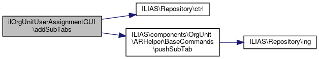 Here is the call graph for this function:| ilOrgUnitUserAssignmentGUI::addSubTabs | ( | ) |