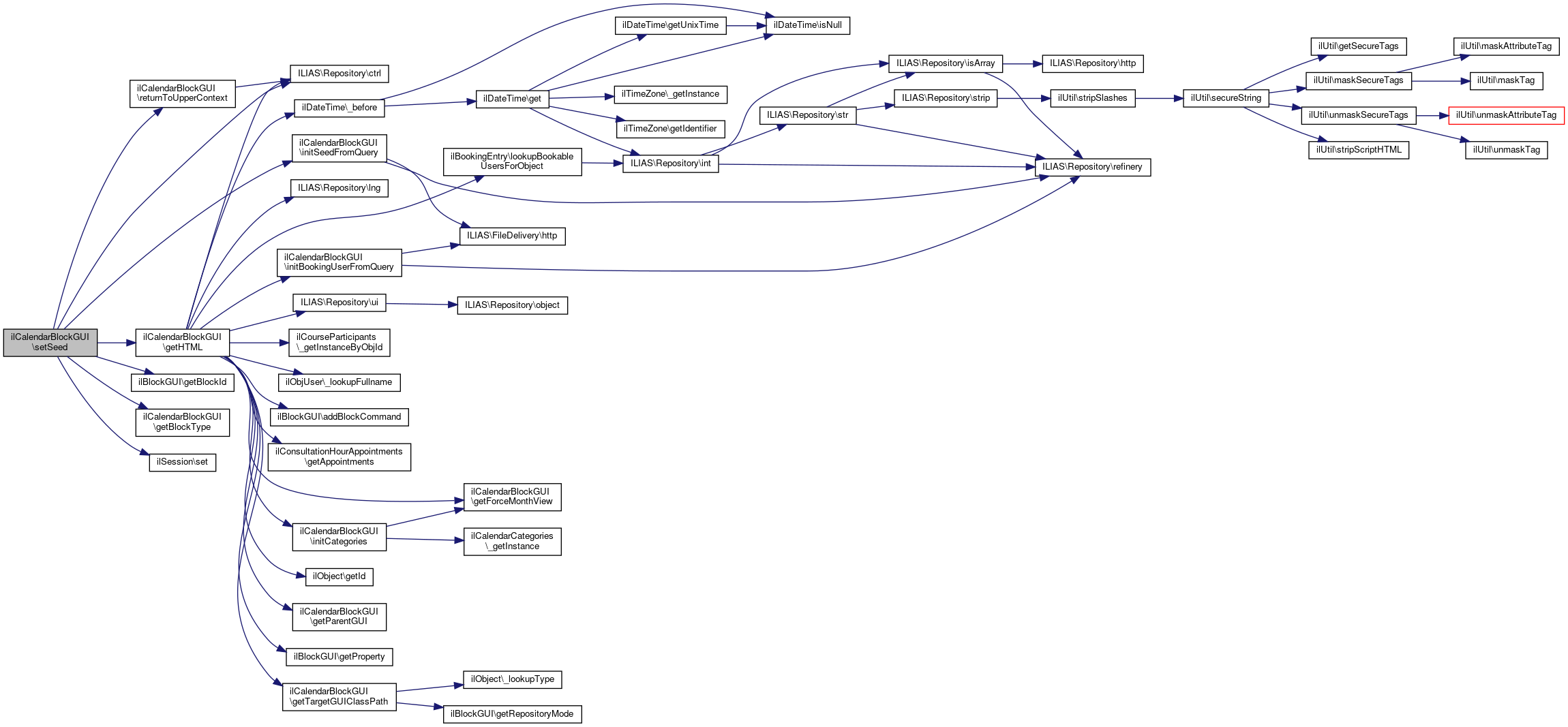 Here is the call graph for this function:| ilCalendarBlockGUI::setSeed | ( | ) |