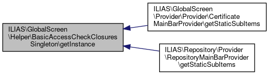 Collaboration diagram for ILIAS\GlobalScreen\Helper\BasicAccessCheckClosuresSingleton:Static Public Member Functions | |