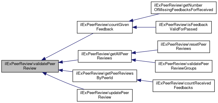 Here is the caller graph for this function:| ilExPeerReview::validatePeerReviewGroups | ( | ) |