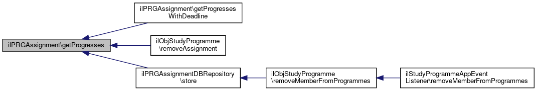 Here is the caller graph for this function:| ilPRGAssignment::getProgresses | ( | array & | $ret = [],  |