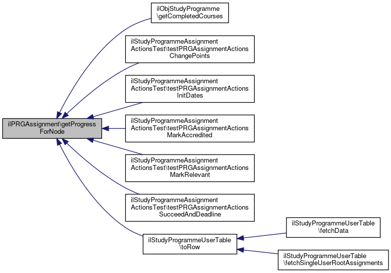 Referenced by ilObjStudyProgramme\getCompletedCourses(), ilStudyProgrammeAssignmentActionsTest\testPRGAssignmentActionsChangePoints(), ilStudyProgrammeAssignmentActionsTest\testPRGAssignmentActionsInitDates(), ilStudyProgrammeAssignmentActionsTest\testPRGAssignmentActionsMarkAccredited(), ilStudyProgrammeAssignmentActionsTest\testPRGAssignmentActionsMarkRelevant(), ilStudyProgrammeAssignmentActionsTest\testPRGAssignmentActionsSucceedAndDeadline(), and ilStudyProgrammeUserTable\toRow().