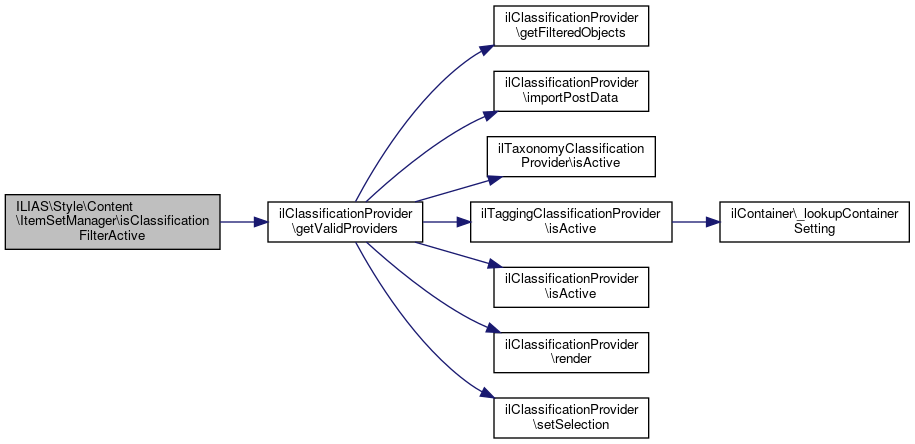Here is the caller graph for this function:| ILIAS\Style\Content\ItemSetManager::isClassificationFilterActive | ( | ) |