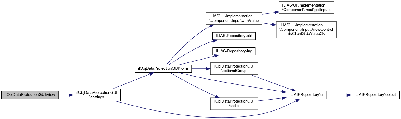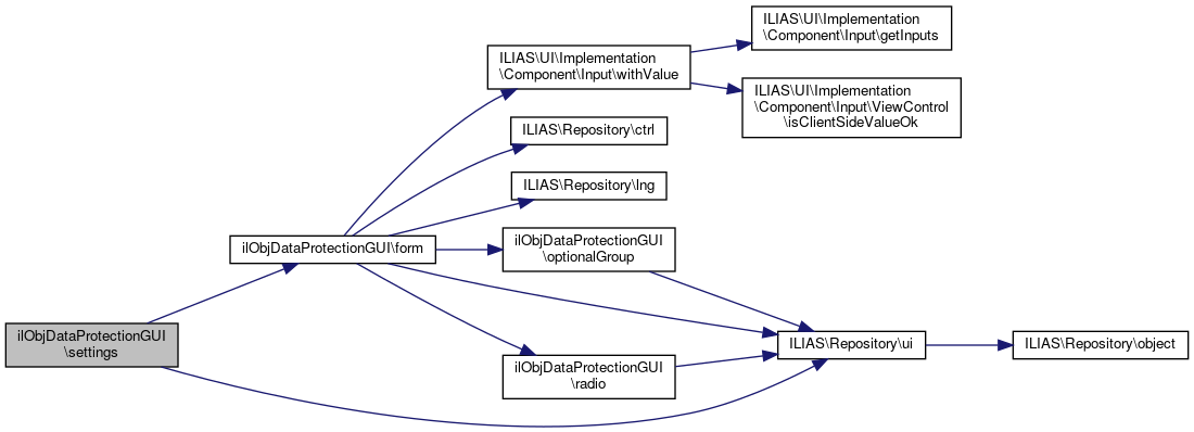 Here is the call graph for this function:| ilObjDataProtectionGUI::settings | ( | ) |