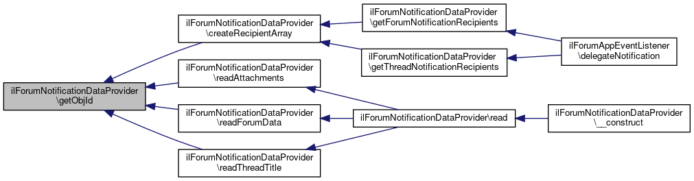 Here is the caller graph for this function:| ilForumNotificationDataProvider::getObjId | ( | ) |